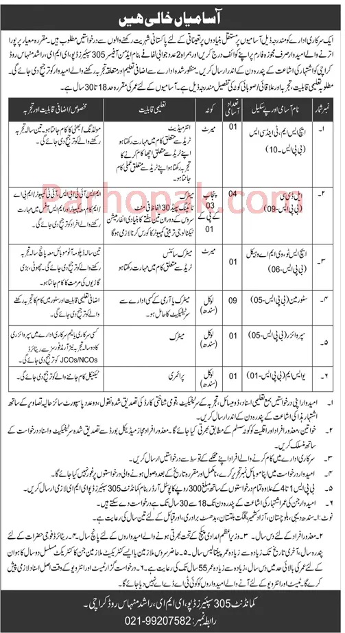Pak Army 305 Spares Depot EME Karachi Civilian Jobs 2023