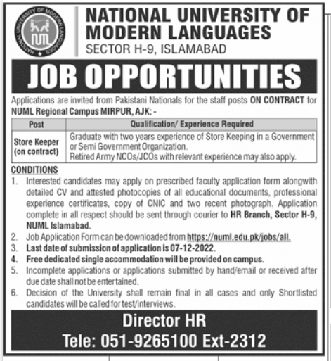NUML University Jobs 2022 – Latest University Jobs